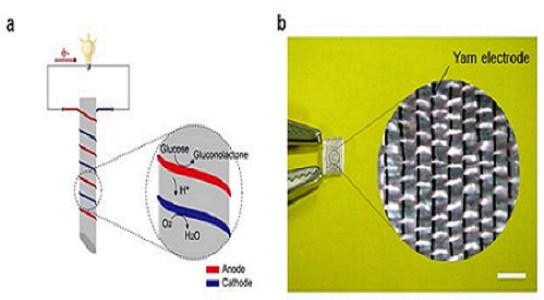 김선정 한양대 전기·생체공학부 교수팀은 탄소나노튜브 표면에 산화·환원 효소를 고정 시킨후, 이를 꼬아 만든 다층 구조의 실 형태 전극을 이용하여 고효율 생체연료전지 시스템을 개발했다. 연구팀이 개발한 생체연료전지 시스템은 유연하고 강한 섬유로 이뤄져 꼬거나 직물형태로 만들 수 있어서 카테터나 스텐트 등의 의료용 기구 형태로 쉽게 가공할 수 있을 것으로 기대된다. 특히 전해질 분리막이 필요없고 소형화가 가능하 페이스메이커, 신경자극기 등 체내 삽입형 의료기긱의 전력 공급원으로 활용할 수 있다. 이번 연구 결과는 ‘네이처 커뮤니케이션’ 온라인판 2일자에 게재됐다.
