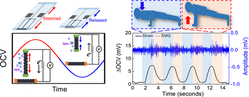 A surface electromyogram (sEMG) electrode collects electrical currents generated by neuromuscular activity by a noninvasive technique on the skin. It is particularly attractive for wearable systems for various human activities and health care monitoring. However, it remains challenging to discriminate EMG signals from isotonic (concentric/eccentric) and isometric movements. By applying nanotechnology, we provide a coiled carbon nanotube (CNT) yarn-integrated sEMG device to overcome sEMG-based motion recognition. When the arm was contracted at different angles, the sEMG-derived root mean square amplitude signals were constant regardless of the angle of the moving arm. However, the coiled CNT yarn-derived open circuit voltage (OCV) signals proportionally increased when the arm’s angle increased, and presented negative and positive values depending on the moving direction of the arm. Moreover, isometric contraction is characterized by the onset of EMG signals without an OCV signal, and isotonic contraction is determined by both EMG signals and OCV signals. Taken together, the integration of EMG and coiled CNT yarn electrodes provides complementary information, including the strength, direction, and degree of muscle movement. Therefore, we suggest that our system has high potential as a wearable system to monitor human motions in industrial and human system applications.